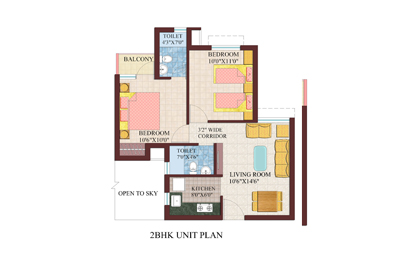 - Flooring: Vitrified tile flooring in drawing/dining room & bed rooms. Ceramic tiles in Kitchen, toilets and balcony.